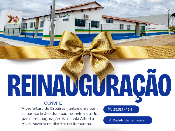 Reinauguração da Escola Alberto Alves Bezerra em Itamaracá: convite da Prefeitura de Groaíras e Secretaria de Educação para toda a comunidade
